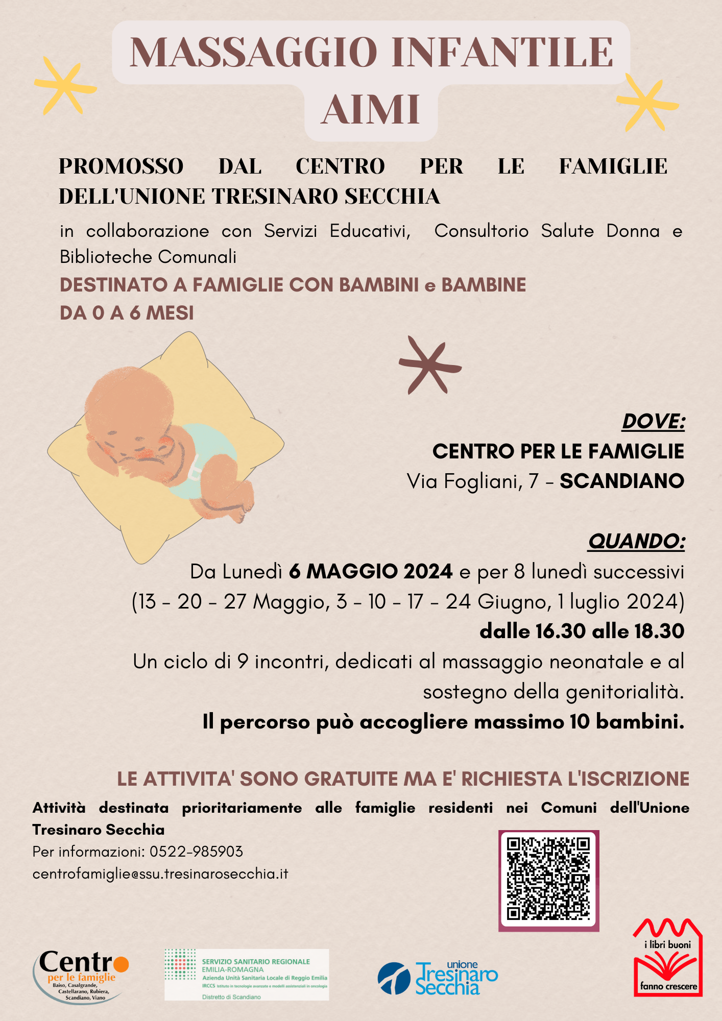 Il percorso di 9 incontri oltre al Massaggio del neonato prevede l’incontro con altri professionisti con cui approfondire tamatiche legate ai primi mesi di vita, dall’allattamento al sonno, i primi distacchi, la lettura fin dai primi mesi…