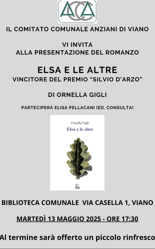 Il Comitato Comunale Anziani di Viano vi invita alla presentazione del romanzo: Elsa e le altre