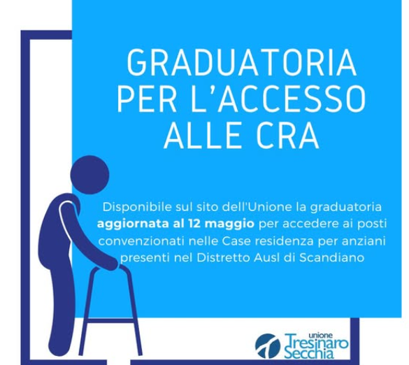 E'pubblicata sul sito dell'Unione Tresinaro Secchia la nuova Graduatoria unica distrettuale per accedere alle Case residenza per anziani (Cra).